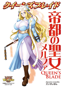 神に仕える上級司祭。慈愛に満ちた非の打ちどころの無い善人ぶりに、人はメルファを"聖女"と呼ぶ。しかし、嫌とは言えない善良な性格が災いして、教派代表としてクイーンズブレイドに参加させられるはめになった。相手に天罰を与える特殊能力を発動させるために数千年前に記された経典にある"聖なるポーズ"を忠実に実行する。しかし聖なるポーズはとんでもなく恥ずかしいものなのであった・・・