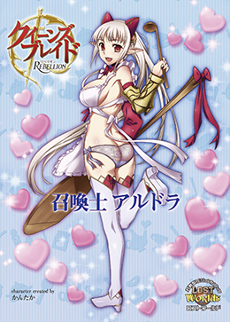 クイーンズブレイド過去2連続制覇の現女王。冥界の悪鬼デルモアと取引して、人智を超えた強大な力を得た。肉体の成長はその時から止まっている。幼い頃、生き別れになった妹アンネロッテがアルドラのすべてである。妹を探しだし、何不自由ない生活をさせたい一心で女王となった。しかし妹は見つからず、長らく悪鬼の力を使ってきたことにより女王自身は狂気に侵されはじめている。